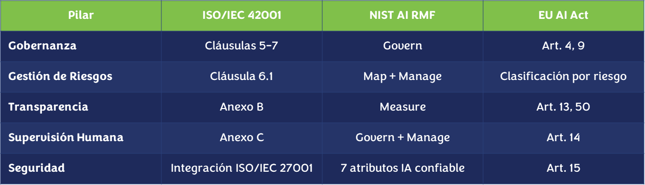 Para evitar que la IA se convierta en un riesgo inmanejable, sugerimos a las organizaciones transitar hacia modelos basados en marcos de referencia globales como ISO/IEC 42001 y el NIST AI RMF.